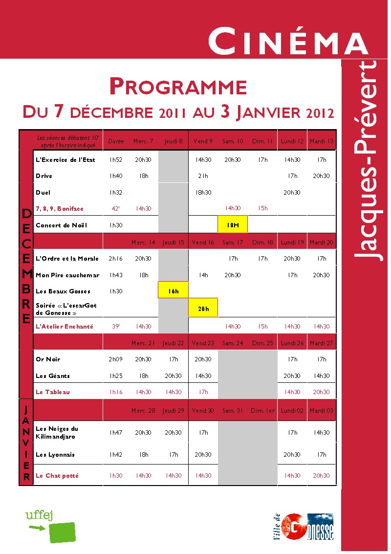 Dès maintenant, préparez avec votre programme les films que vous viendrez voir au Jacques-Prévert de Gonesse. Votre salle de cinéma et plus encore.